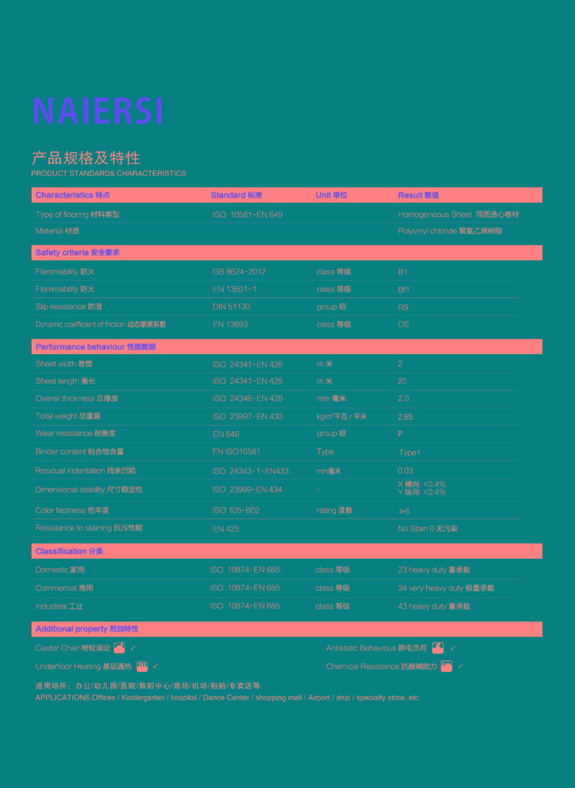 型號:同質(zhì)透心卷材地板 T-5001尺寸:20m(長)*2m(寬)厚度:2.0mm耐磨層厚度:2.0mm磨損率:P級